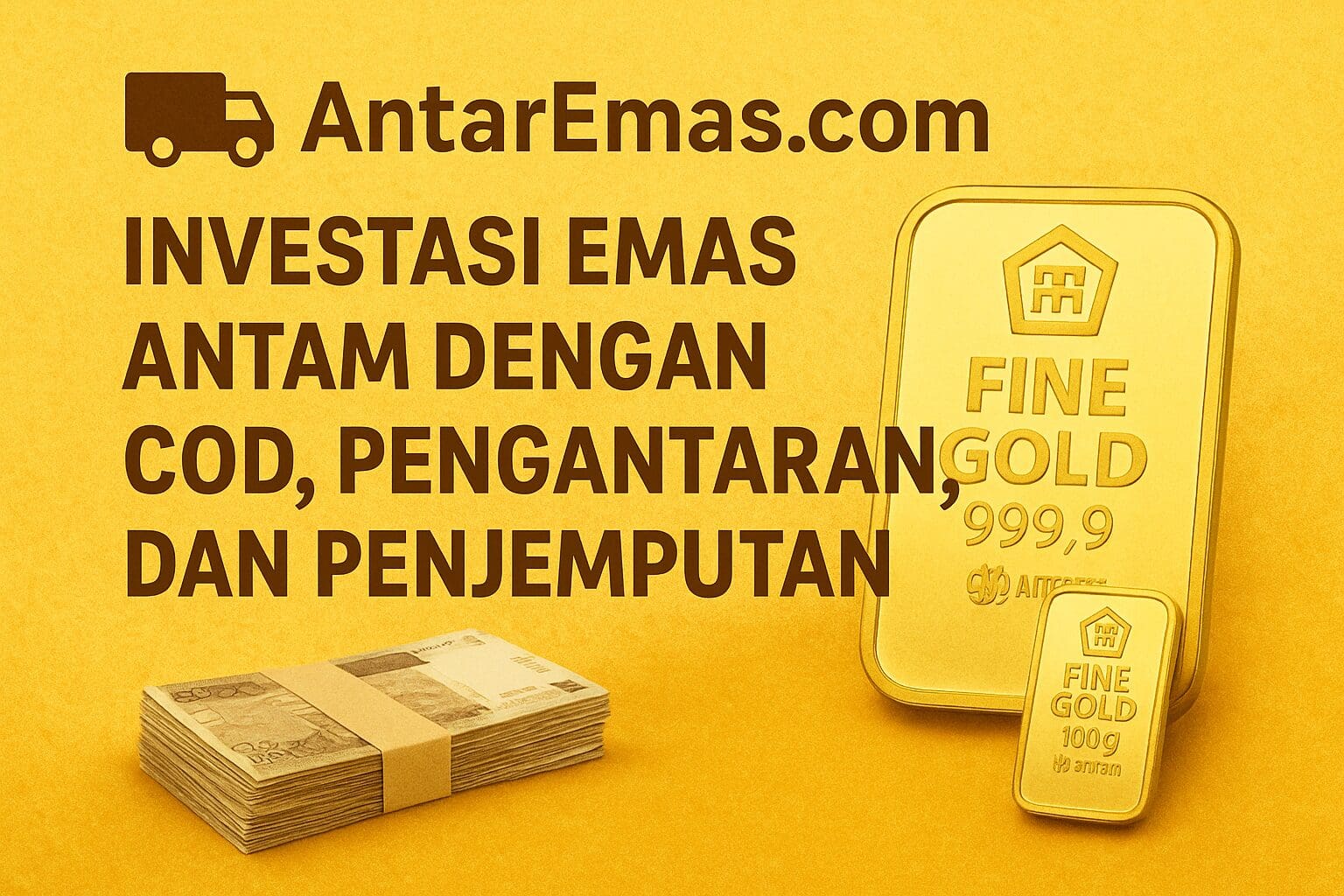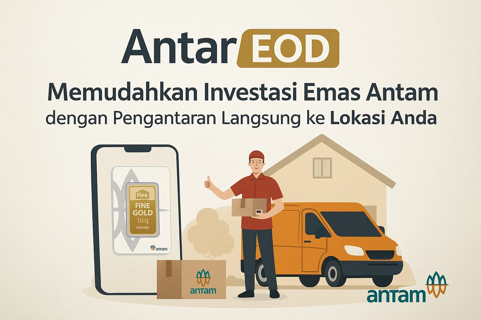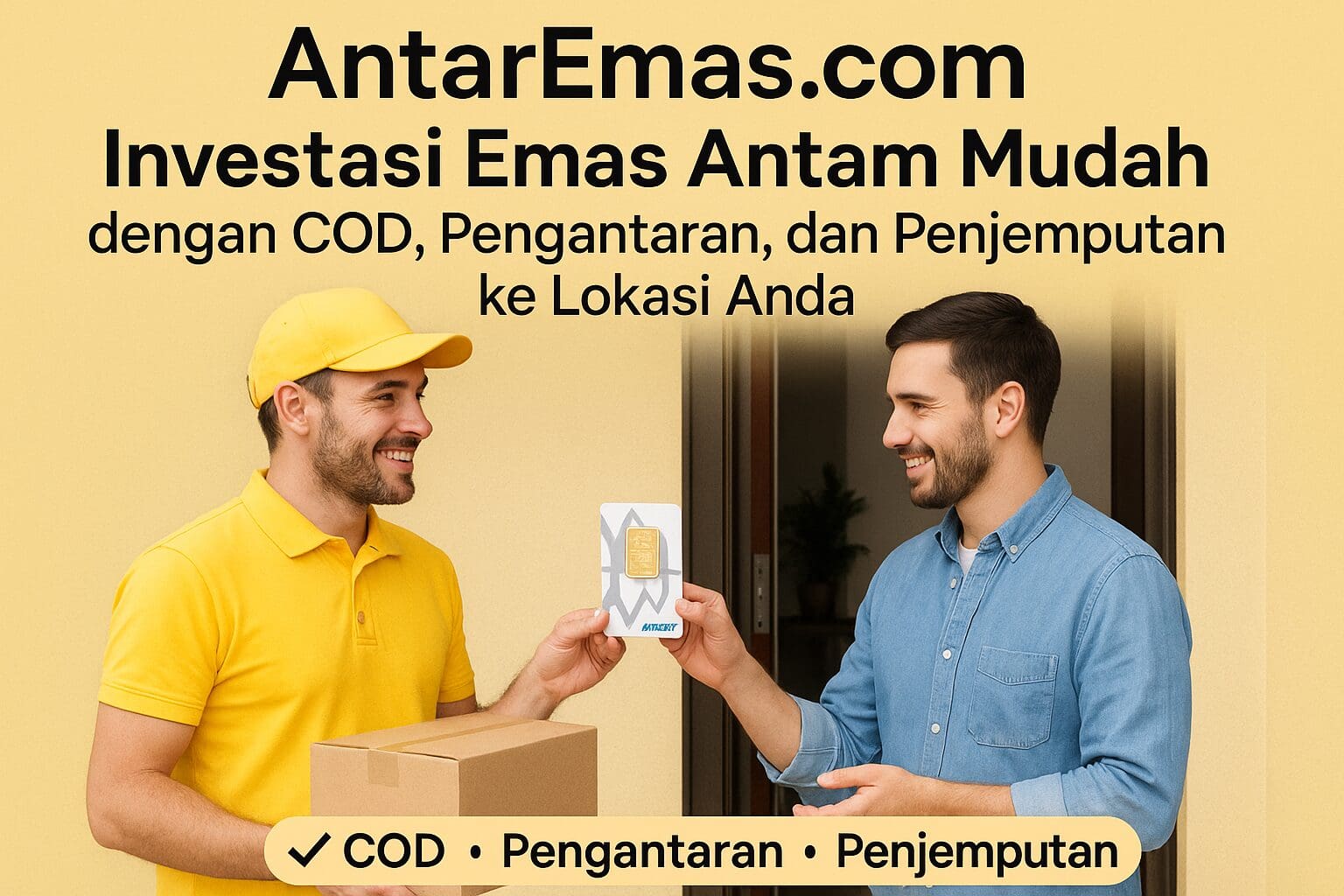 AntarEmas.com memudahkan investasi Emas Antam dengan layanan COD, pengantaran, dan penjemputan langsung ke lokasi Anda. Tidak perlu lagi menunggu antrean